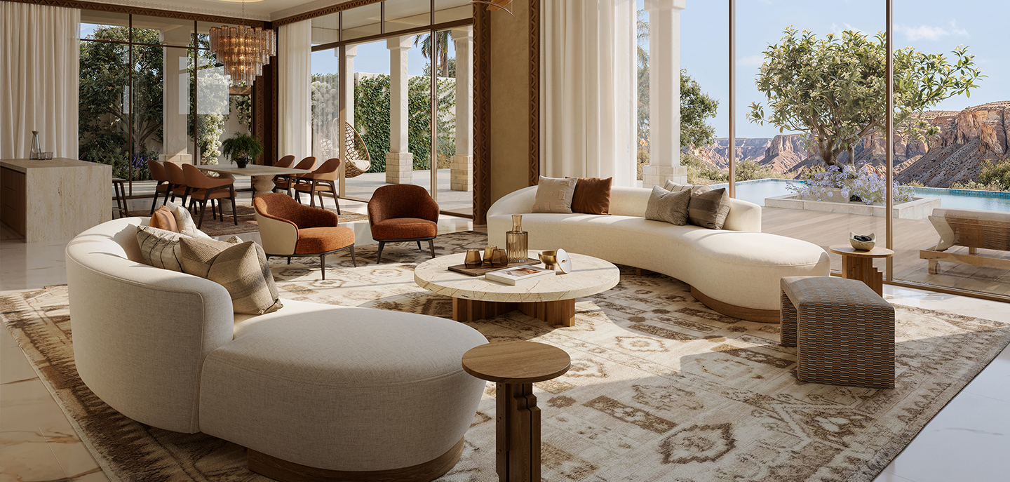 Set against a naturally sculpted landscape, Rayana seamlessly blends refined architecture with the timeless character of Saudi heritage. Each mansion is delivered as a complete architectural foundation, allowing owners full creative freedom to personalize interiors according to their lifestyle, while maintaining architectural harmony across the community.